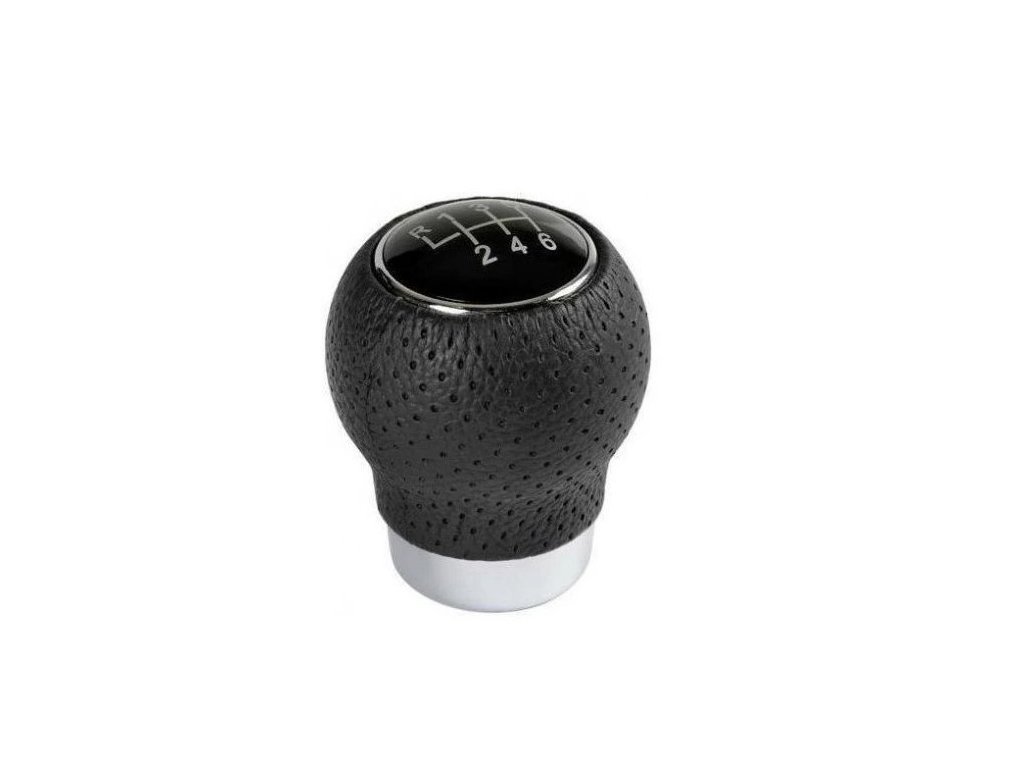 Koncovka řadící páky, černá kůže s černým prošíváním a pochromovaným hliníkem