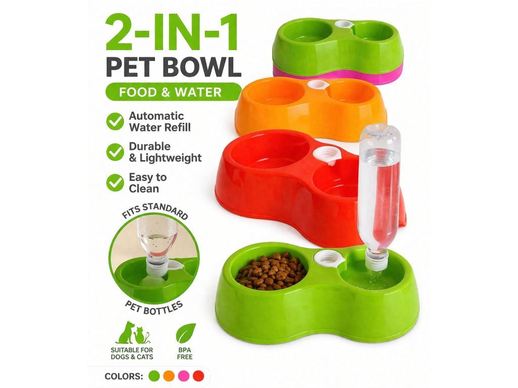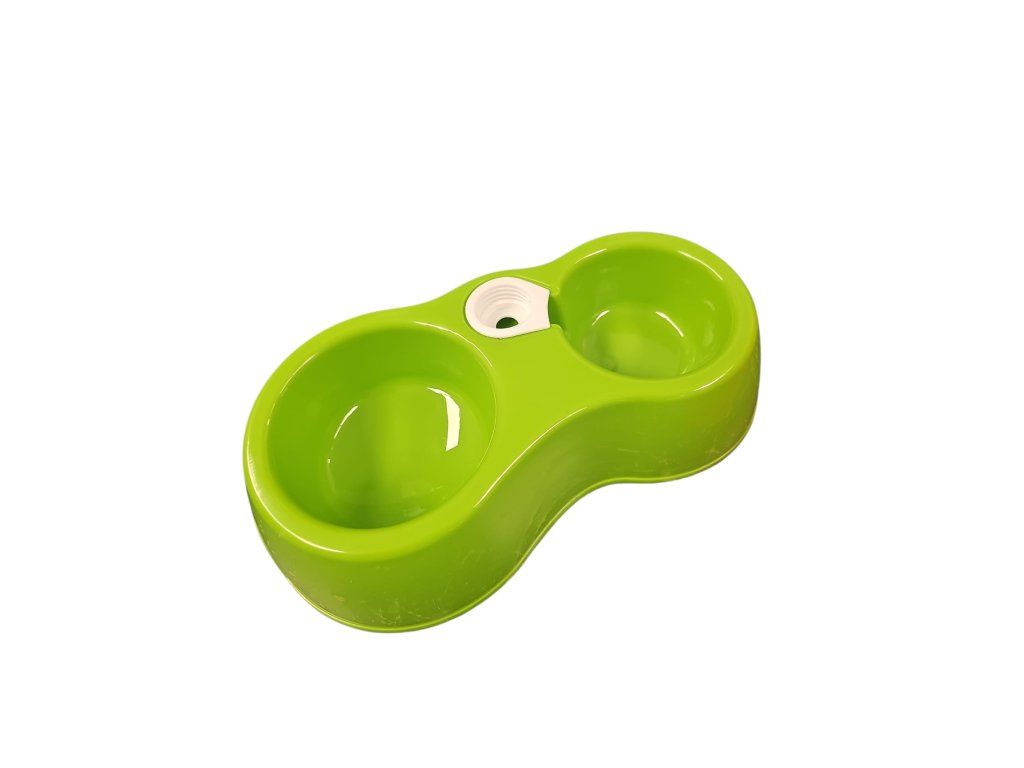 Dvojitá miska s dávkovačem vody kompatibilní s PET láhví (láhev není součástí).