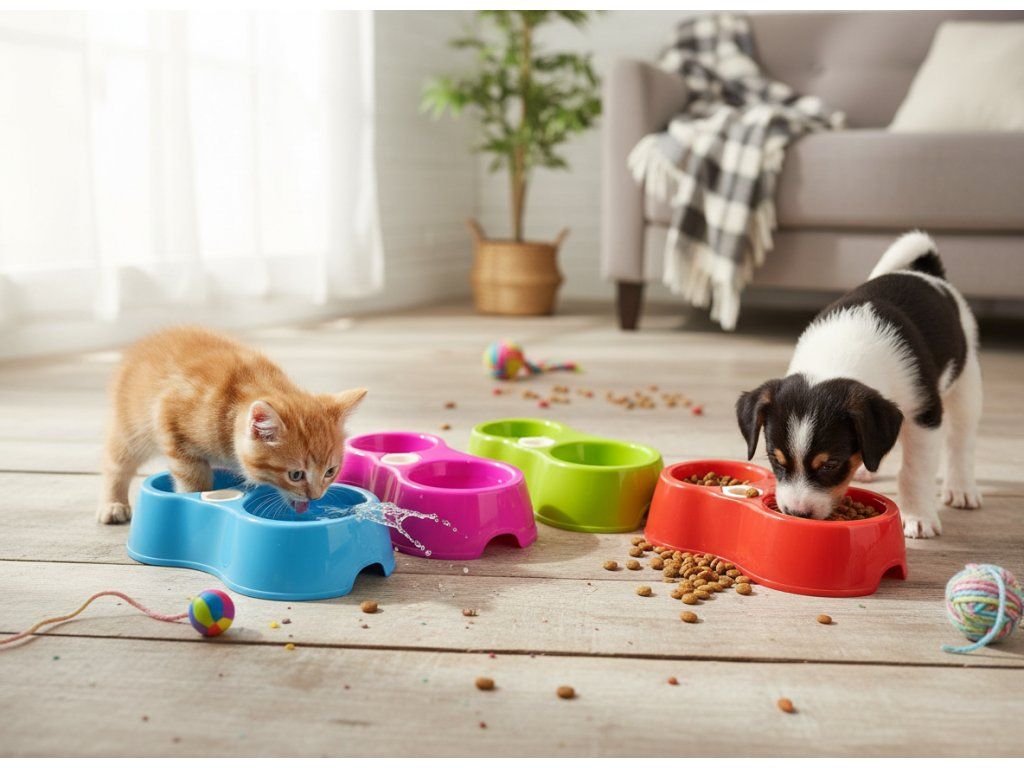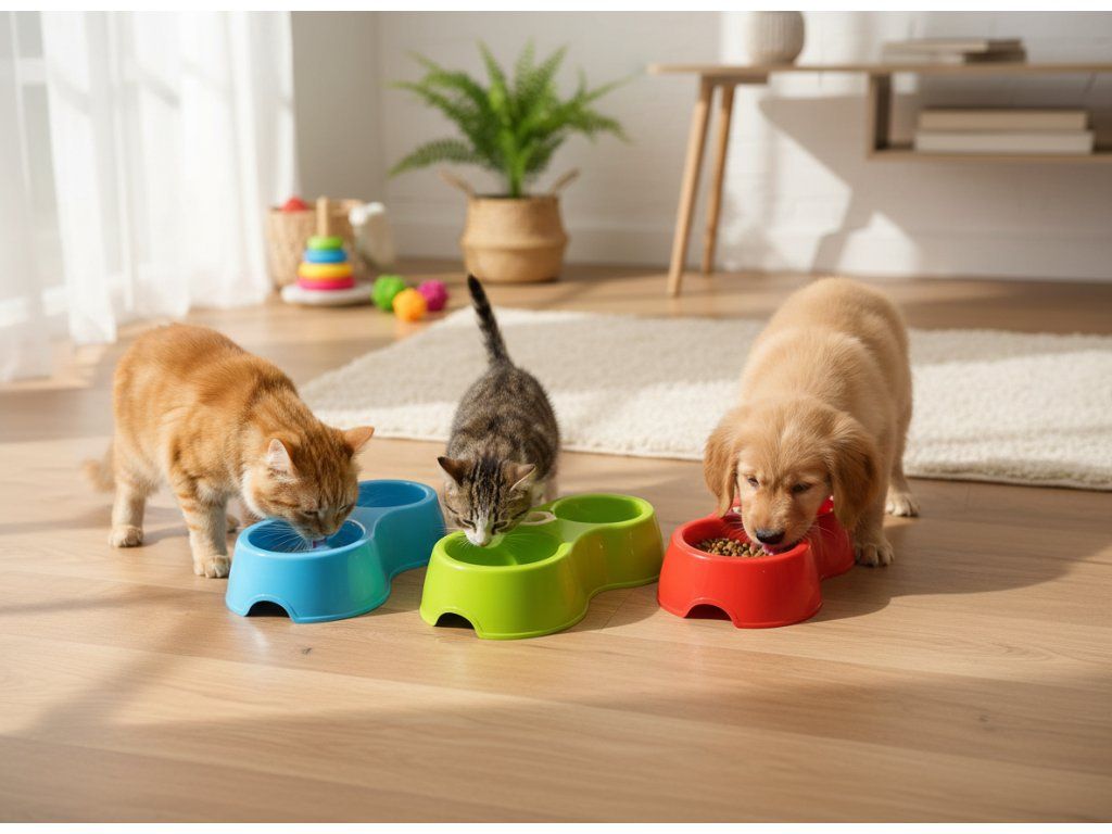 Praktická dvojitá miska pro psy a kočky s možností automatického doplňování vody.