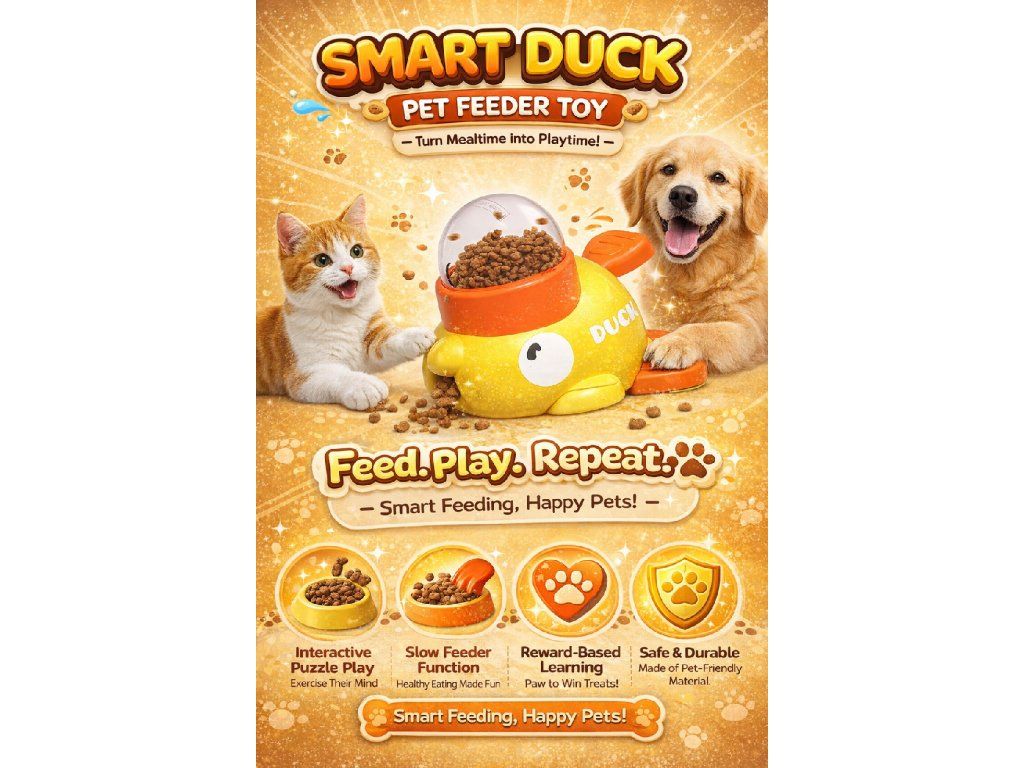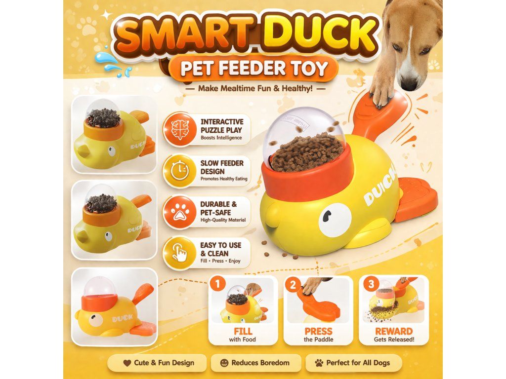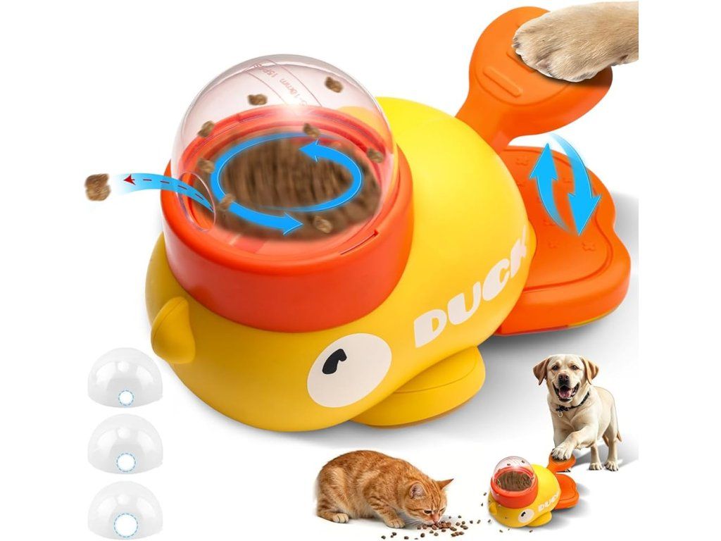 Interaktivní hračka pro psy ve tvaru kachny, která stimuluje mysl a zabaví vašeho mazlíčka. Pes stisknutím pedálu uvolňuje pamlsky, čímž podporuje přirozenou aktivitu a zpomaluje krmení. Ideální pro psy o hmotnosti 3–50 kg.