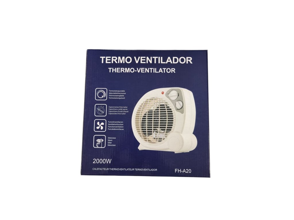 Teplovzdušný ventilátor disponuje vestavěným termostatem, který je zodpovědný za udržování konstantní teploty okolí. V okamžiku dohřátí místnosti termostat vypne provoz zařízení, což umožňuje omezit spotřebu proudu, poté když teplota klesne obnoví provoz farelky.