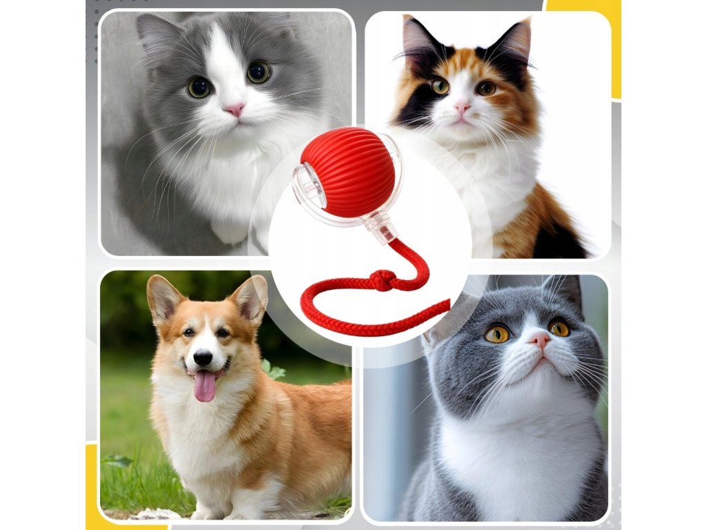 Interaktivní míček pro kočky s pohybovým efektem, USB dobíjecí, LED světlo-Červený