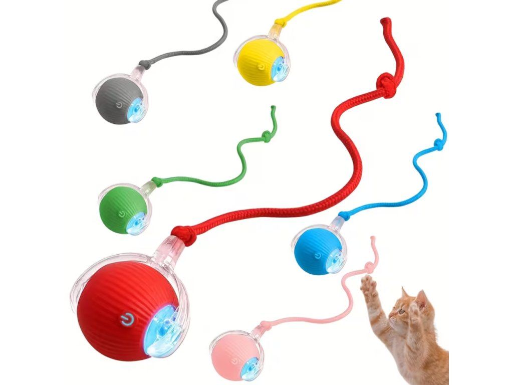 Interaktivní LED míček pro kočky, který se automaticky pohybuje při dotyku a stimuluje lovecký instinkt. USB dobíjení, odolné provedení a zábava i ve tmě.