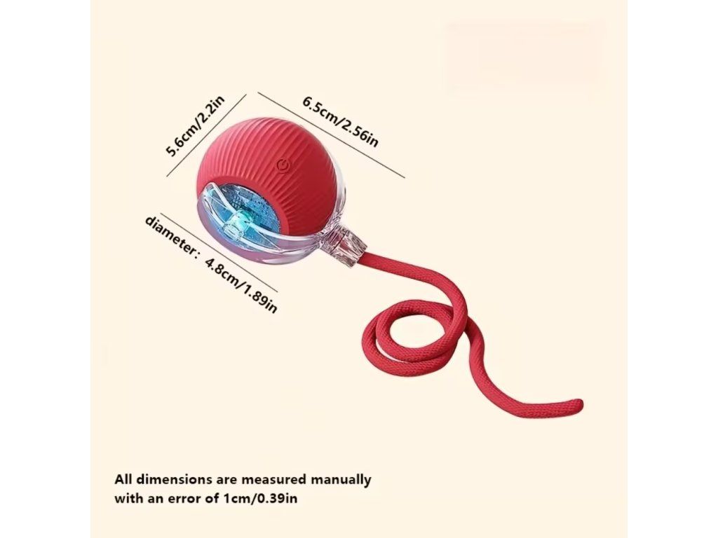 Interaktivní míček pro kočky s pohybovým efektem, USB dobíjecí, LED světlo-Červený.