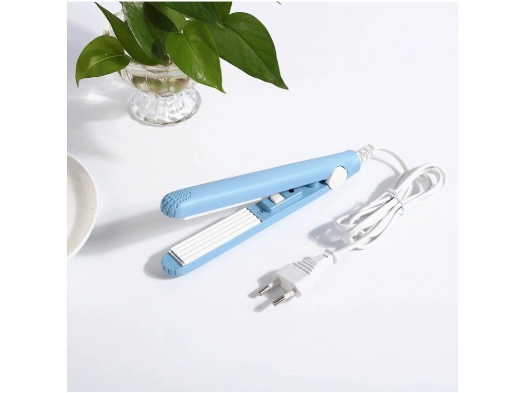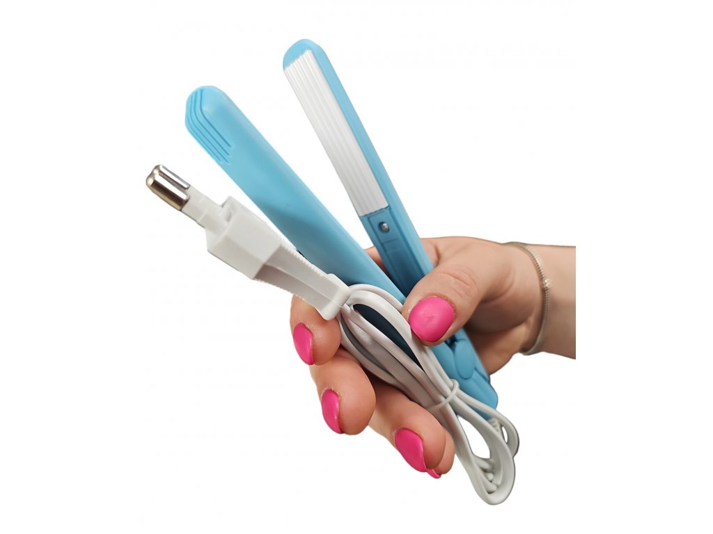 Mini přenosná žehlička na vlasy krepovací-Modrá