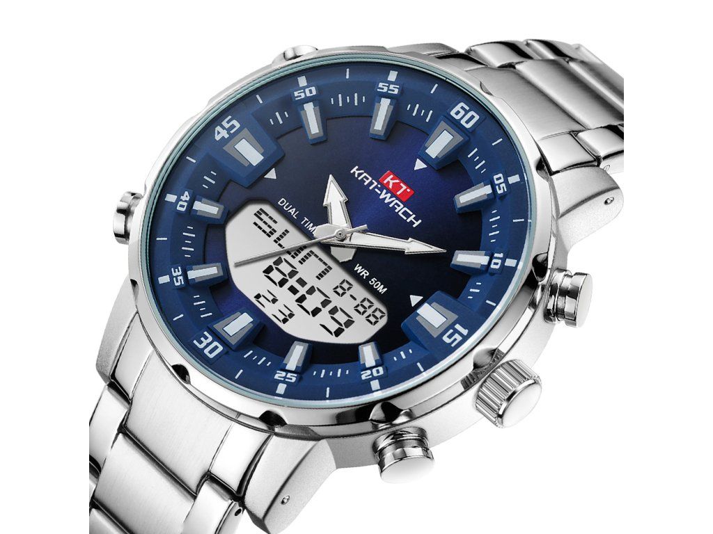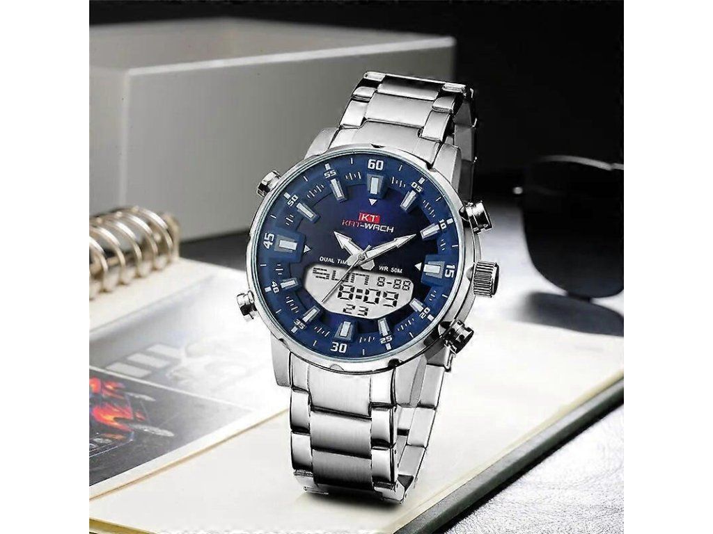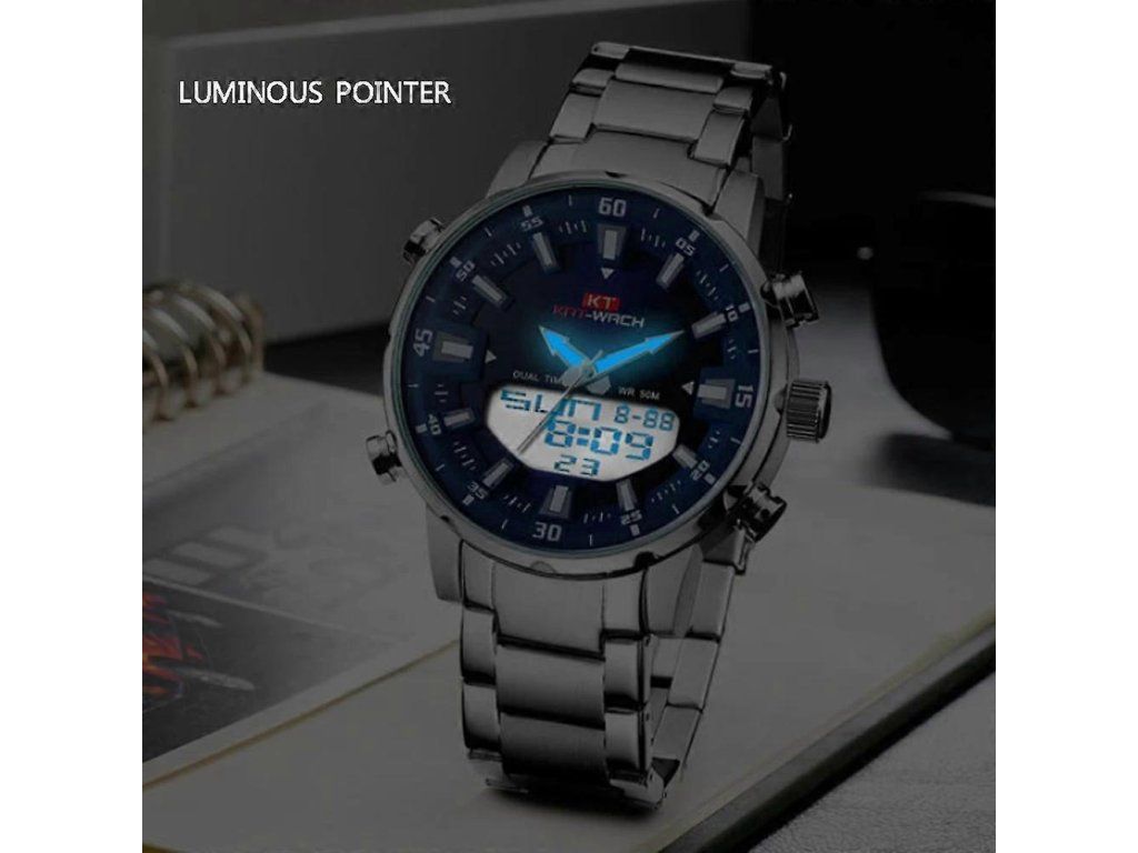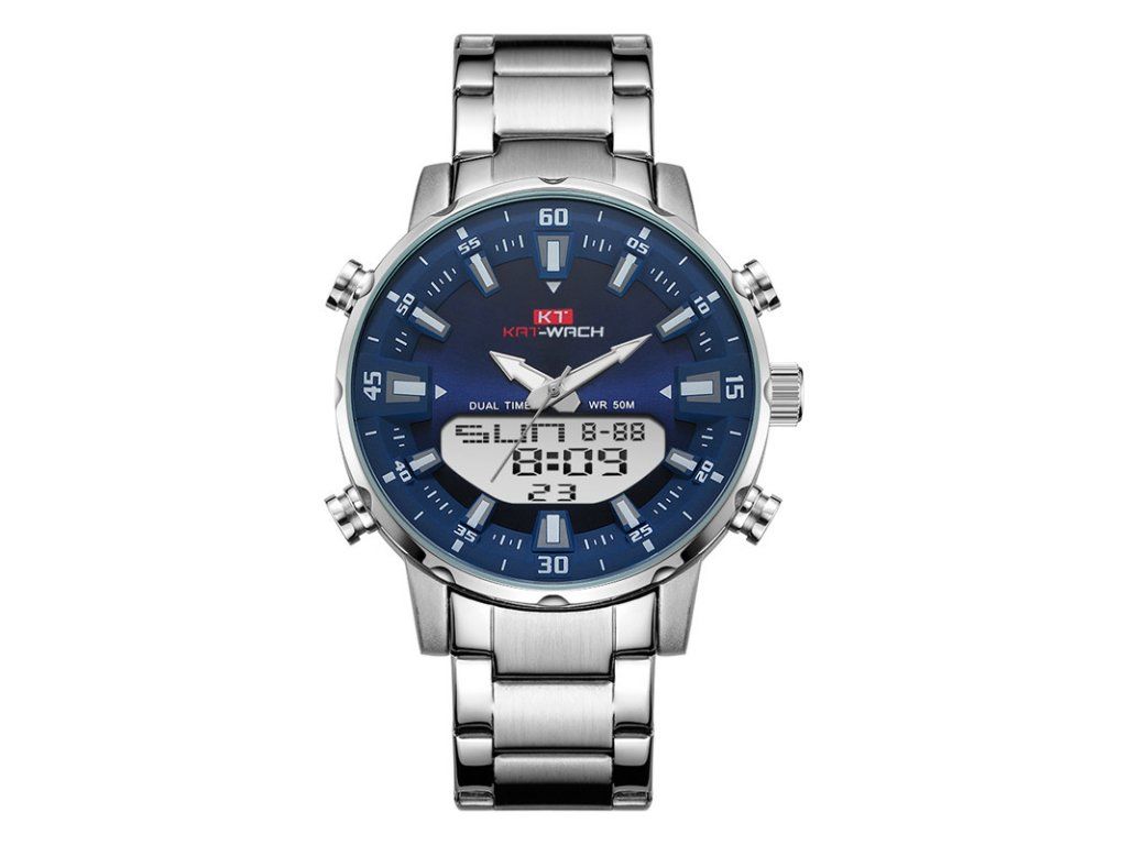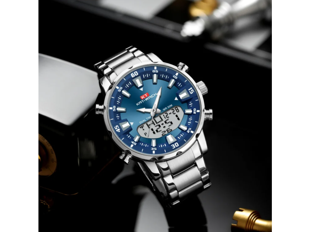 Pánské hodinky KAT-WACH analog + digitální, LED, voděodolné 5ATM-Modrý