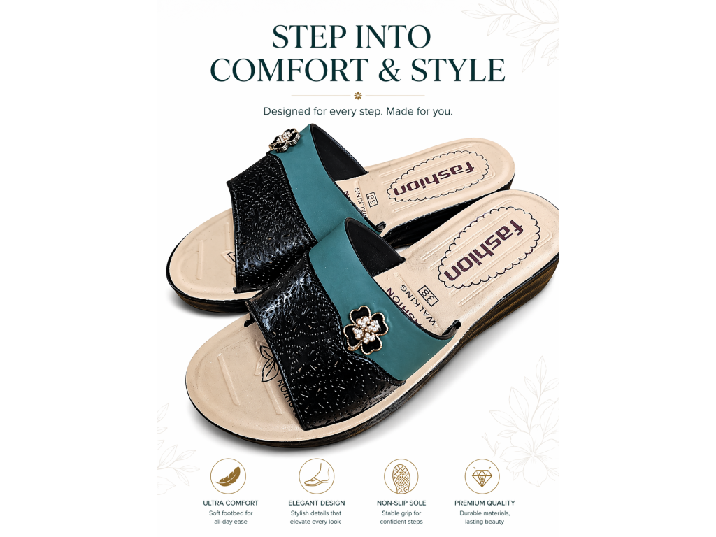 Protiskluzová podrážka zvyšuje bezpečnost při chůzi na hladkých površích, jako jsou dlažba nebo koupelna. Pantofle jsou voděodolné, snadno se čistí a nevyžadují žádnou speciální údržbu.