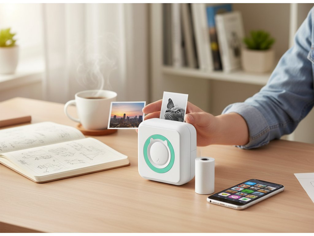 - Tato přenosná chytrá mini tiskárna používá termotisk. Vytisknete si fotografie okamžitě a kdekoli. Díky tepelné technologii se nepoužívá inkoust a nevznikají tak zbytečné náklady.