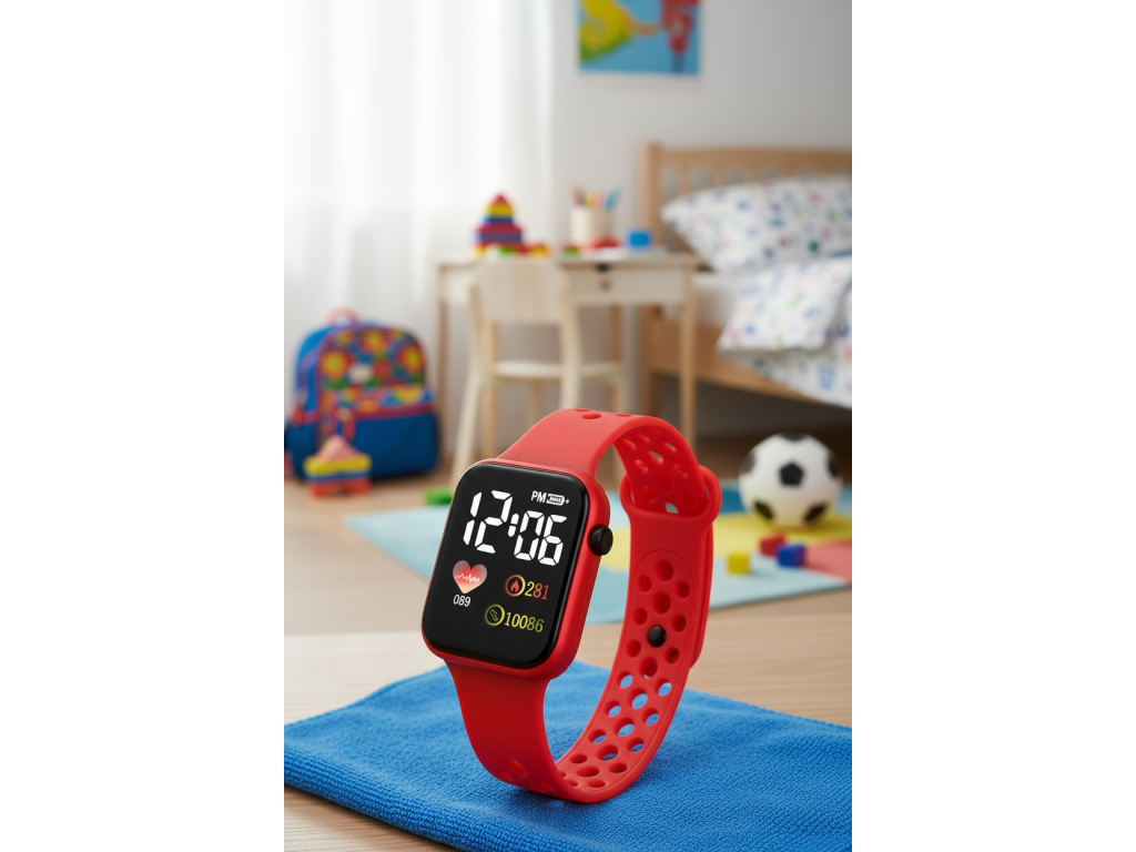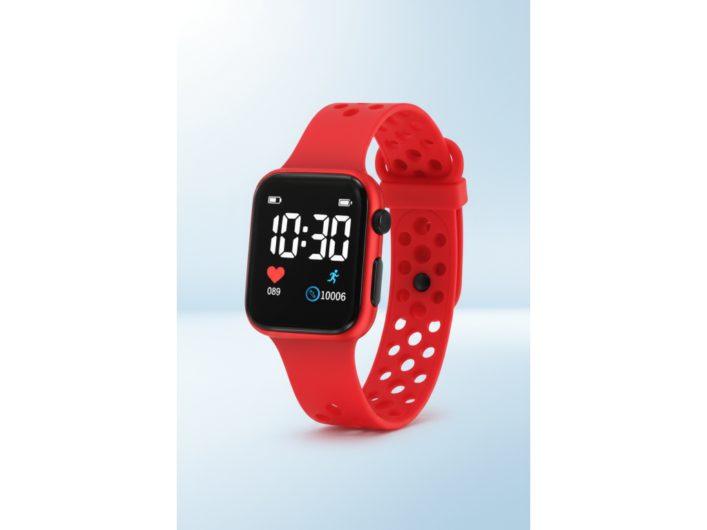Stylové digitální sportovní hodinky s LED displejem v moderním designu inspirovaném chytrými hodinkami. Lehké, pohodlné a ideální pro každodenní nošení i sportovní aktivity.