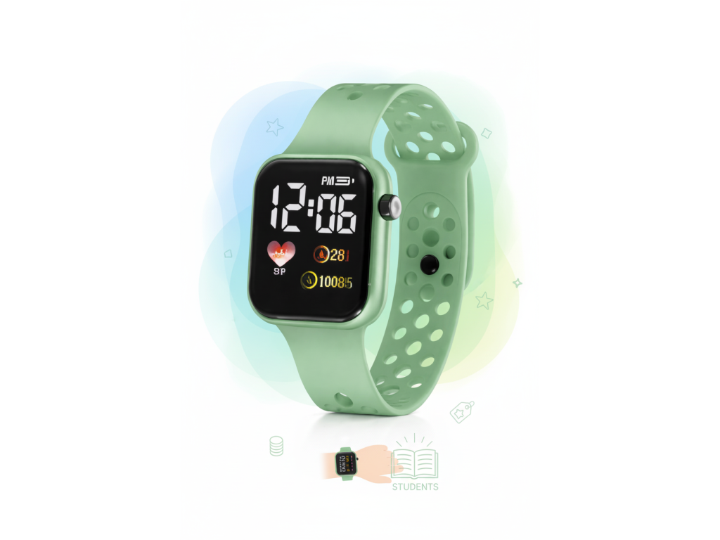 Dětské digitální hodinky LED zelené – sportovní styl, lehké, design chytrých hodinek