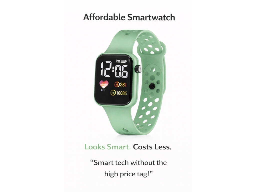 Stylové digitální sportovní hodinky s LED displejem v moderním designu inspirovaném chytrými hodinkami. Lehké, pohodlné a ideální pro každodenní nošení i sportovní aktivity.