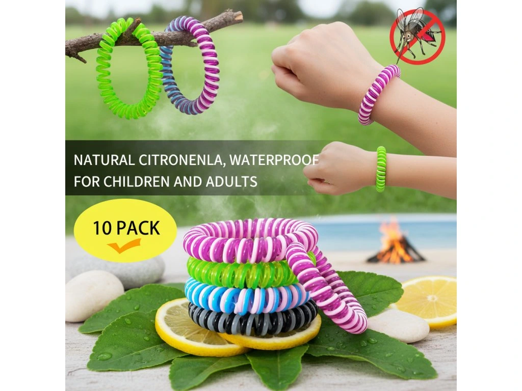 10 ks Repelentní náramky proti komárům – Přírodní citronella – Voděodolné – Pro děti i dospělé-Mix barev
