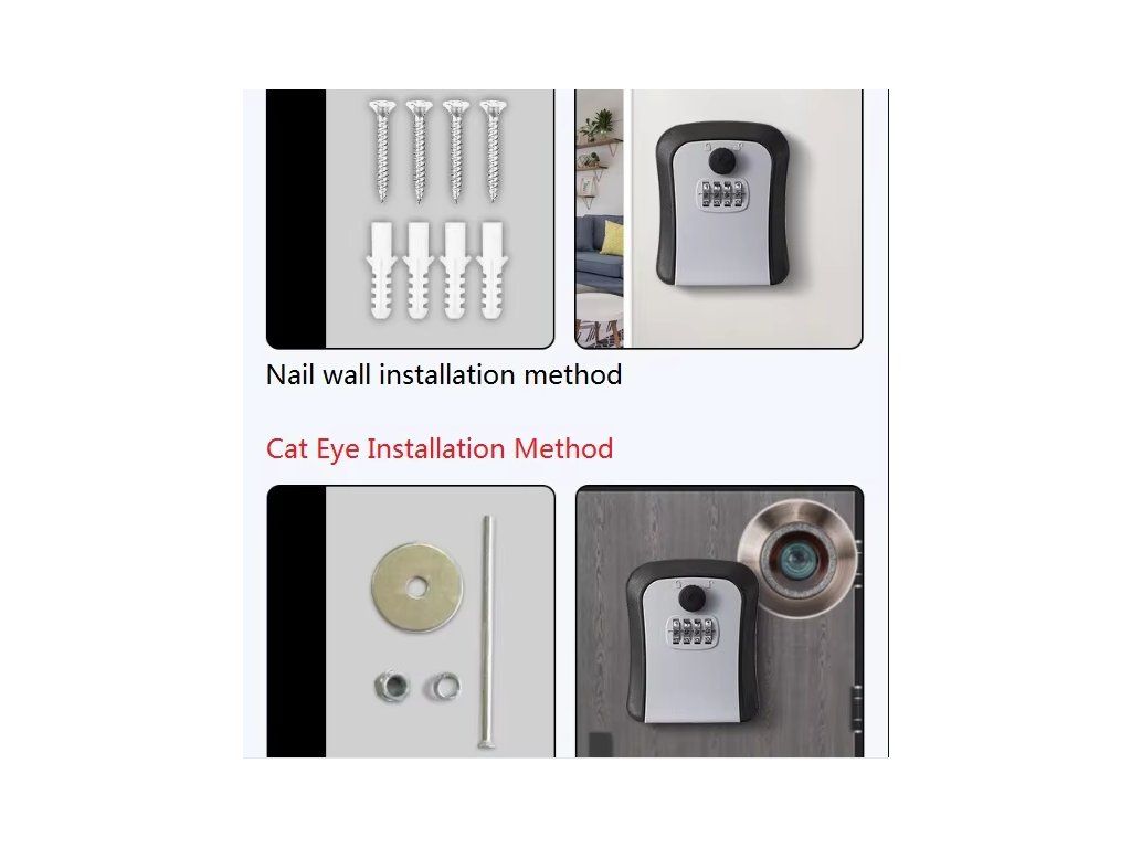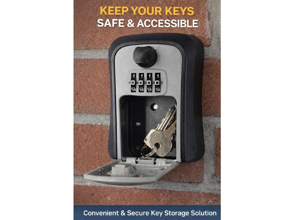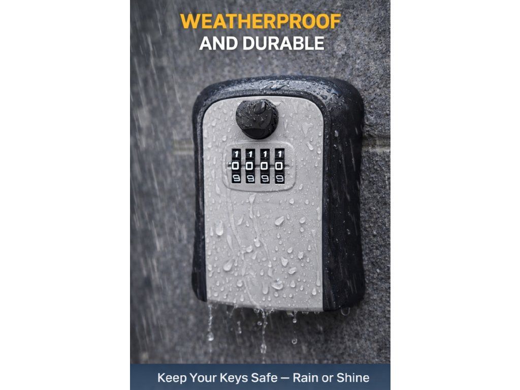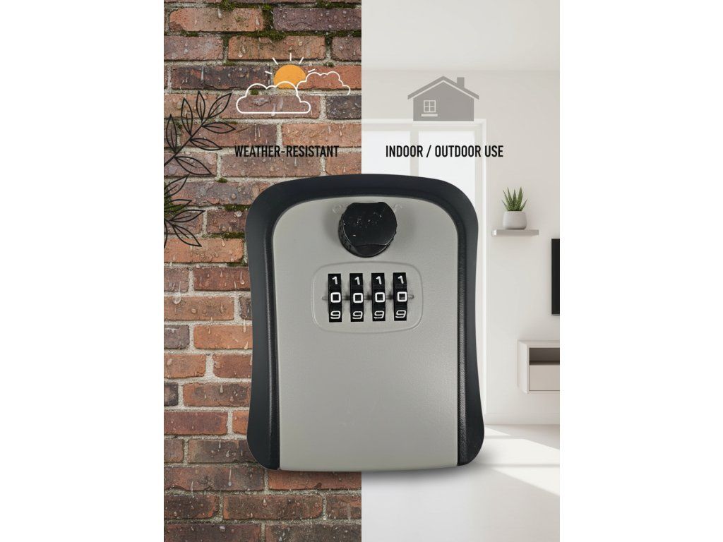 Praktická a bezpečná schránka na klíče s číselným kódem. Ideální pro domácnosti, Airbnb, kanceláře nebo sdílení klíčů. Odolná konstrukce umožňuje použití venku i uvnitř.