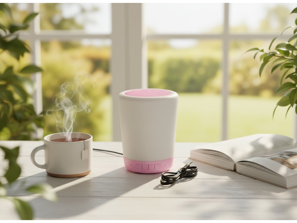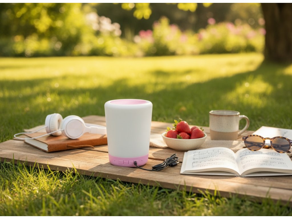 Chytrá noční dotyková lampa RGB s WiFi a reproduktorem - růžová