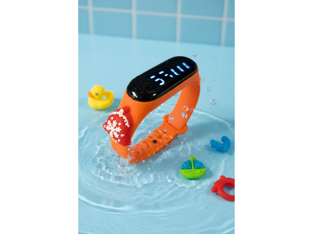 Dětské LED digitální hodinky – silikonový pásek, lehké, voděodolné3ATM-Oranžová.